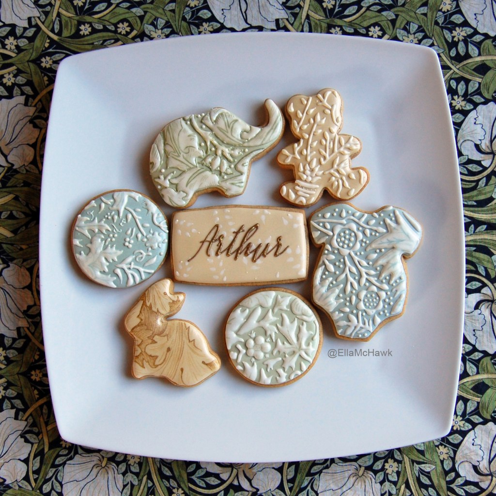 Context: Inspired by Arts & Crafts patterns. Made to celebrate the arrival of a new baby.