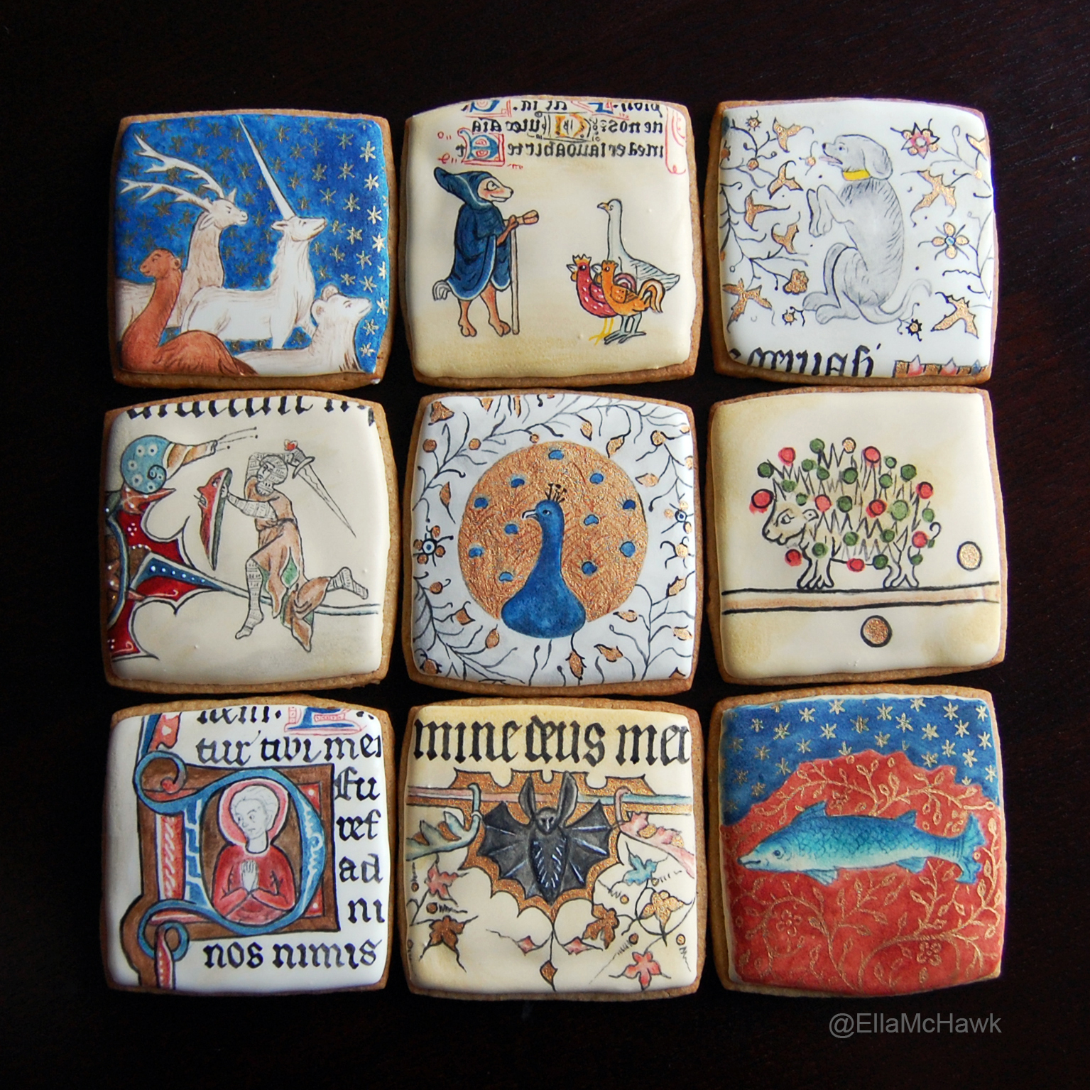 Context: Inspired by illuminated manuscripts in the collections of the British Library, the Bodleian, the Morgan Library, and Bibliothèque Nationale de France. Manuscripts represented in the set include: MS. Latin 9471, MS Stowe 17, Add MS 49622, BL Harley 2900, MS M.183, Exeter College MS 47, and Add MS 18850.